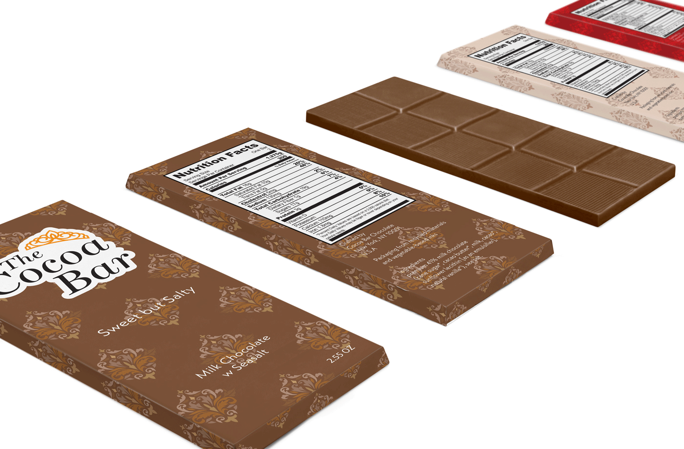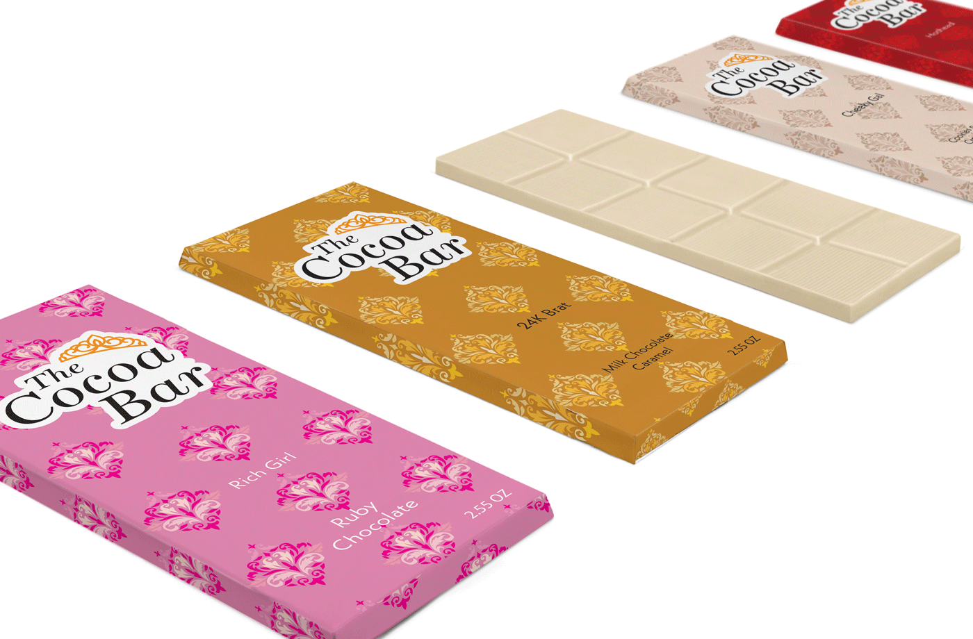 The Cocoa Bar is a chocolate bar candy company that uses natural ingredients for its chocolates and use recyclable materials for their packaging. Each season the bars are themed based on movies, pop culture of the past or present. This season the inspiration was Veruca Salt from Charlie and The Chocolate Factory.